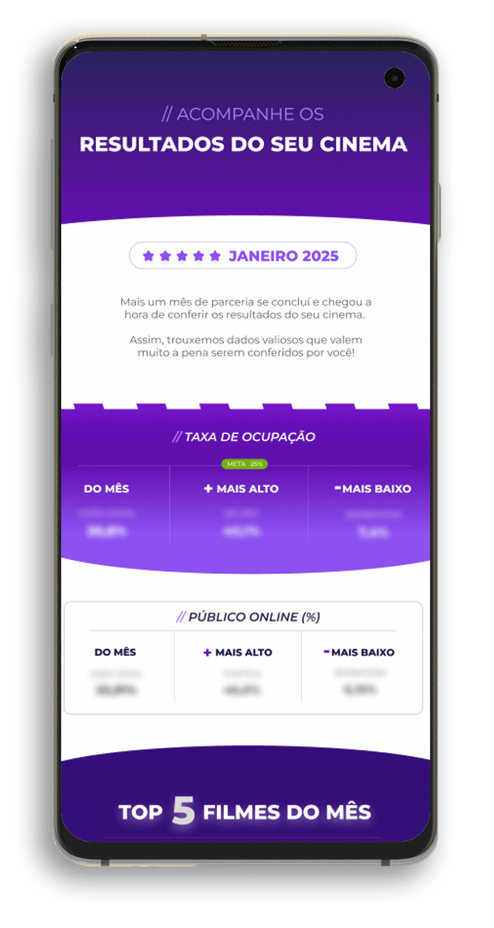 Receba uma visão completa dos resultados do seu cinema, preparado cuidadosamente para você tomar decisões mais assertivas e estratégicas.
